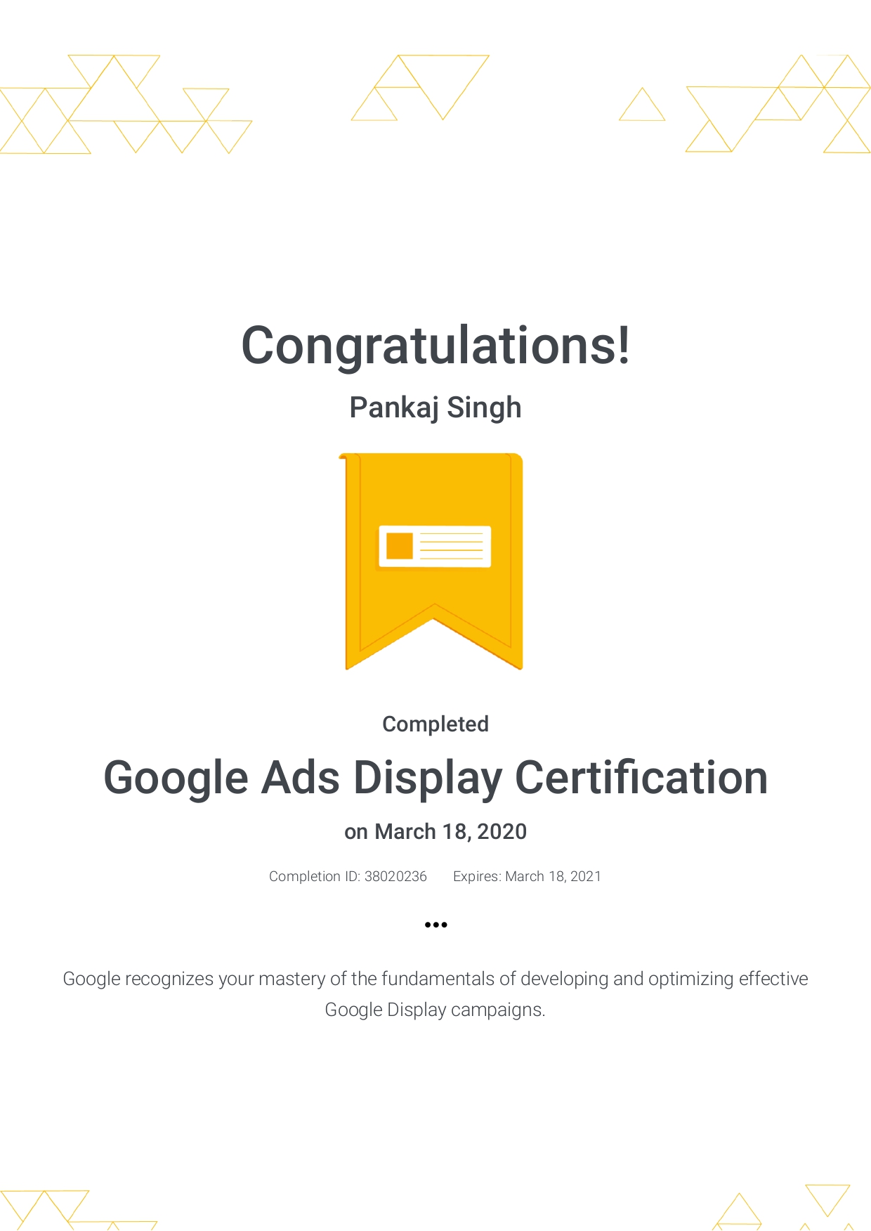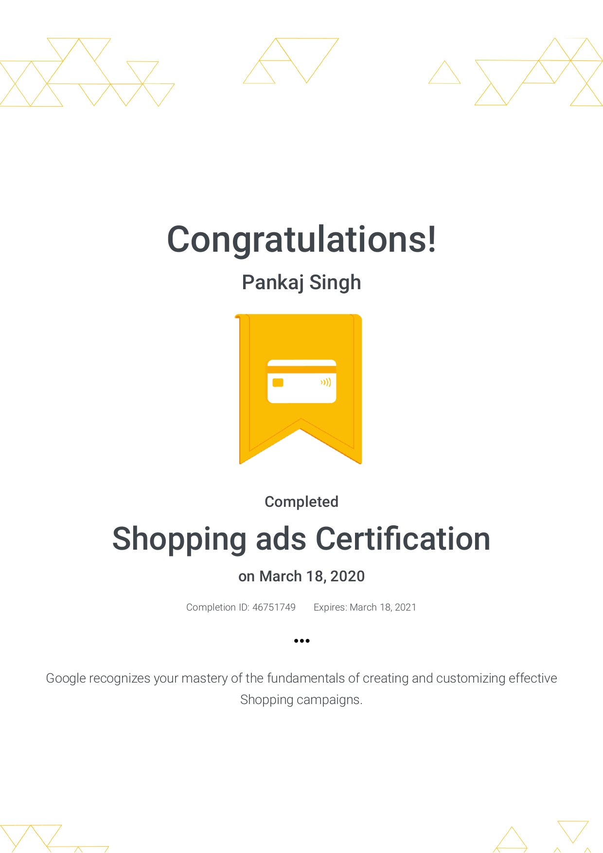 My latest Certifications