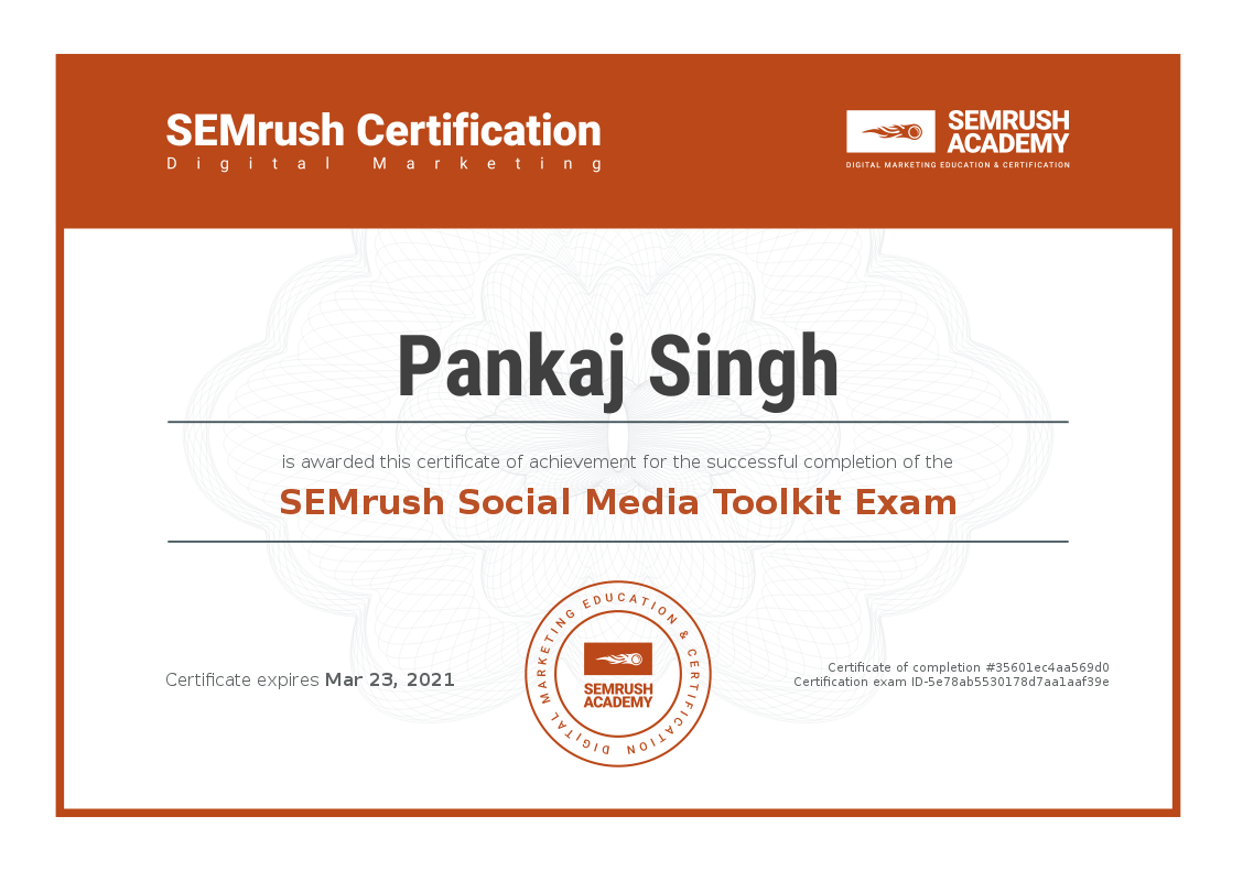 Issuing Organization: Google Skillshop | Hubspot Academy | Twitter | SEMrush | Microsoft